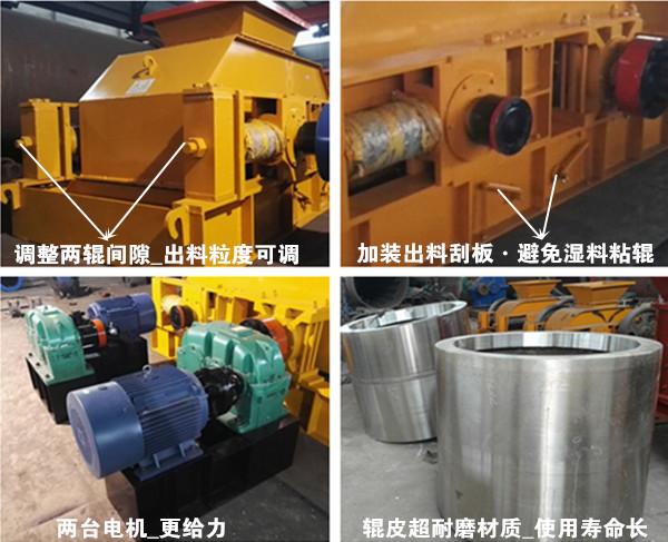 出料粒度可根據(jù)實(shí)際需要進(jìn)行調(diào)節(jié),兩輥間隙越大,出料越大,間隙越小,出料越細(xì),滿(mǎn)足多種需求;