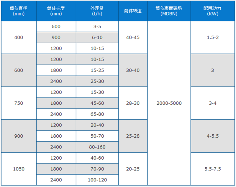 干式磁選機(jī)技術(shù)參數(shù)