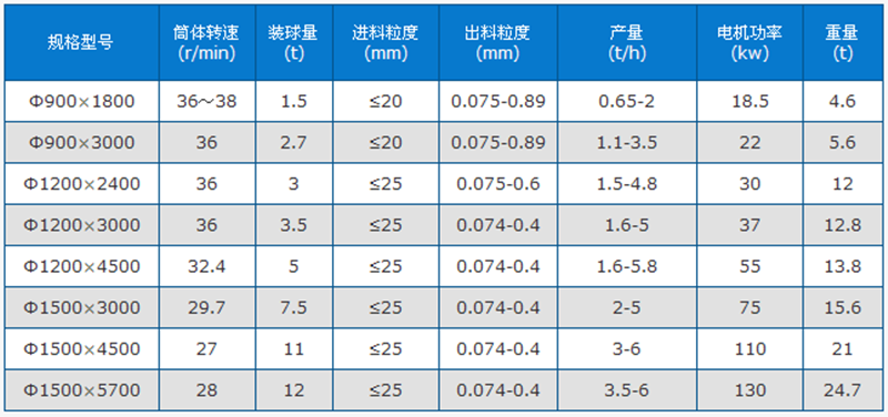 小型球磨機技術(shù)參數(shù)